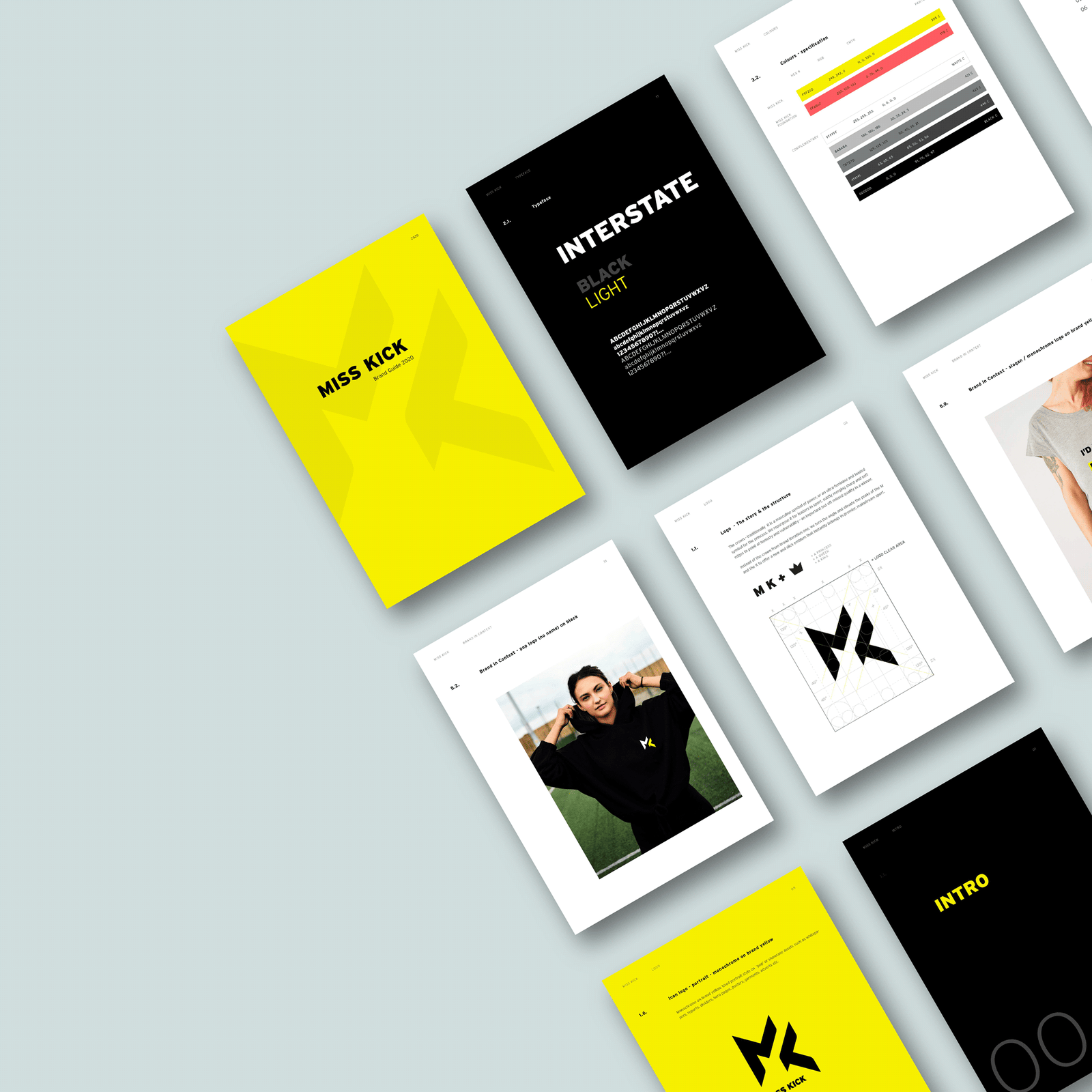 Miss Kick evolved into an expressive letter type, to retain the essence of the original brand mark, a crown, while modernising and channeling a new street-wise, aspirational energy.