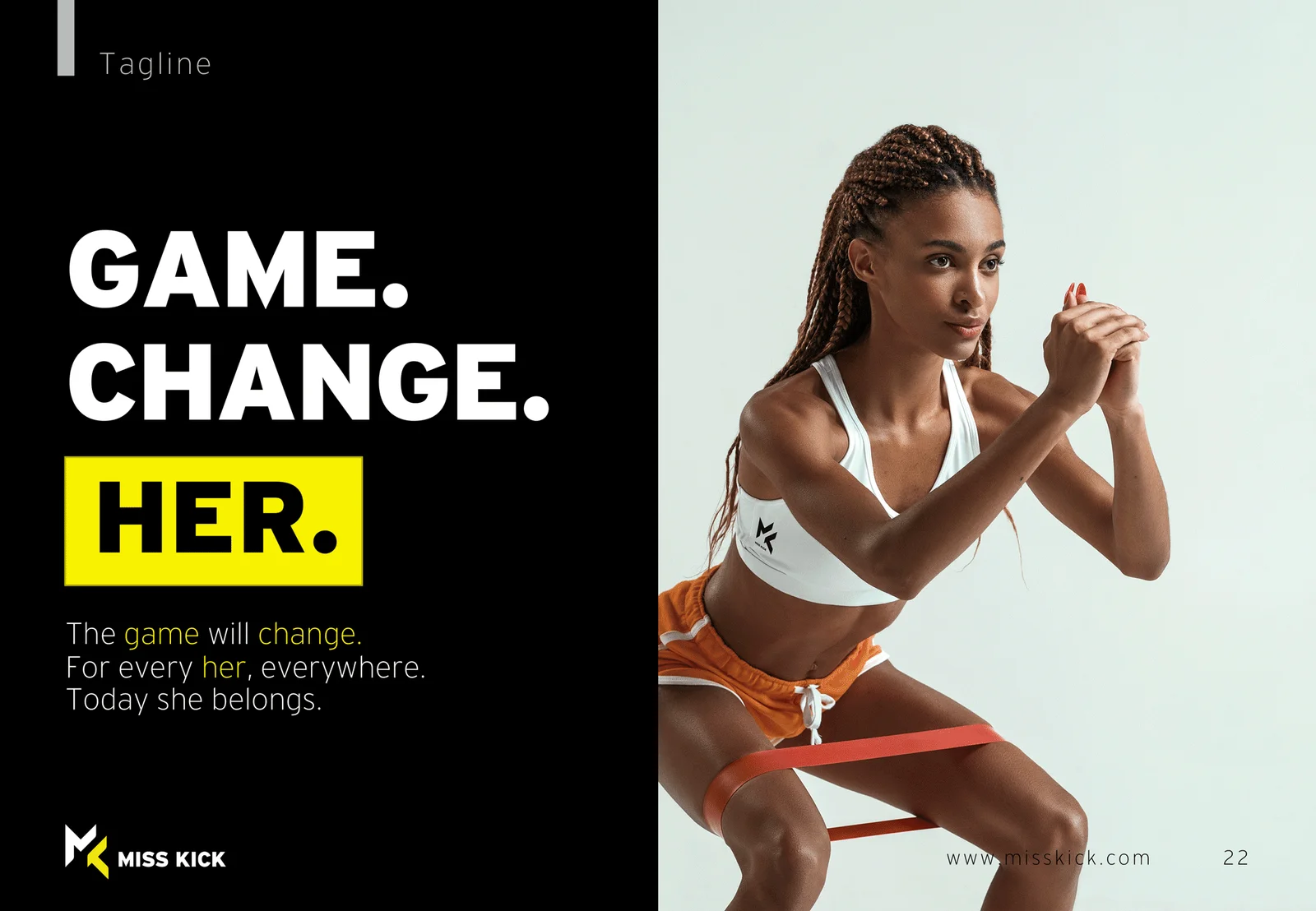 The brand offers two divisions: Miss Kick and The Miss Kick Foundation, a non-profit to support talented female footballers. Execution tells a story. It reflects the founder, her values and a vision. Game. Change. Her.